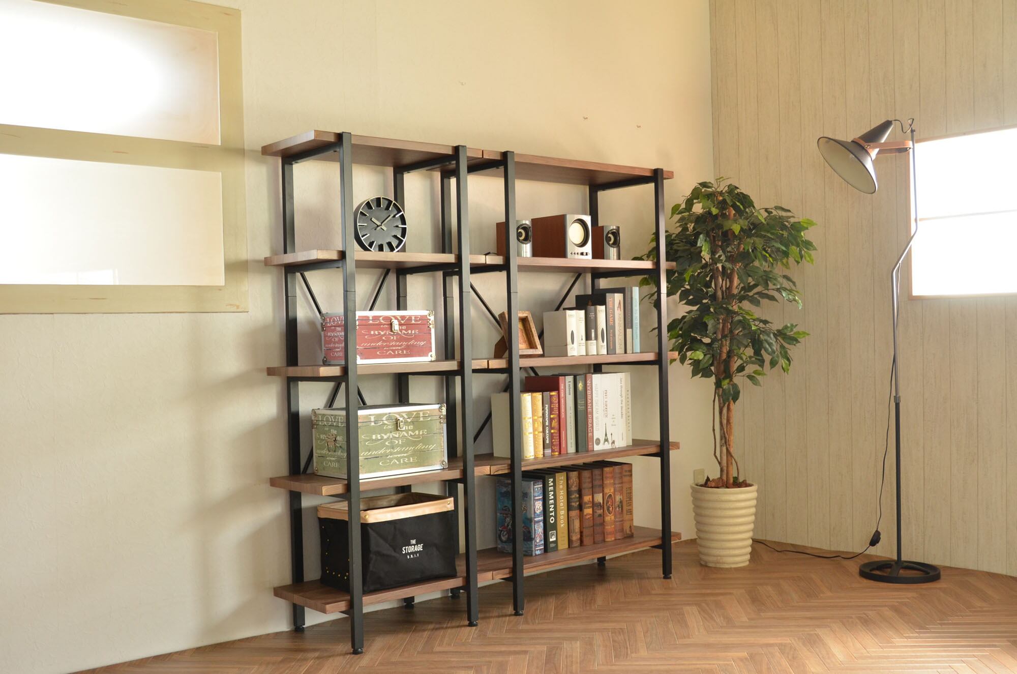 ヴィンテージ風の木目シートとアイアンの組み合わせが絶妙です。7種類のオープンラックのラインナップがあり、2段・3段・4段5段と並べて壁面収納としてご使用頂けると階段のようになり、はやりのキャットウォークも兼ね備えたような壁面収納になります。